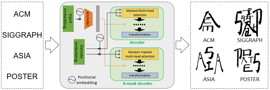 Paper introduction: We propose a transformer-based model to learn Square Word Calligraphy to write English words in the format of a square that resembles Chinese characters. To achieve this task, we compose a dataset by collecting the calligraphic characters created by artist Xu Bing, and label the position of each alphabet in the characters. Taking the input of English alphabets, we introduce a modified transformer-based model to learn the position relationship between each alphabet and predict the transformation parameters for each part to reassemble them as a Chinese character. We show the comparison results between our predicted characters and corresponding characters created by the artist to indicate our proposed model has a good performance on this task, and we also created new characters to show the “creativity" of our model.