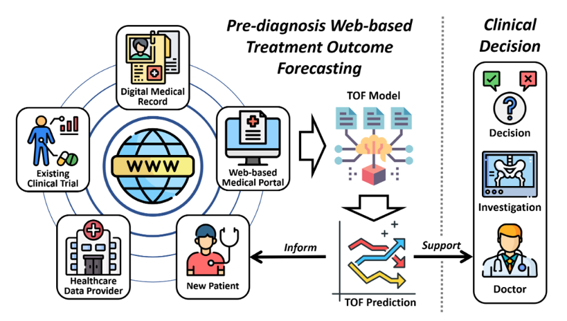 由于网络技术的发展,脊柱病患者有可能在互联网上获得决策建议。网络技术的独特性,包括其普及性、便利性和即时性,使得智能医疗技术,特别是治疗结果预测(TOF)能够支持医生和医疗机构的临床决策。尽管已经有一些基于机器学习的方法被提出来,但由于忽视了一些实际的挑战(在互联网上应用造成的),包括有偏见的数据选择、噪音监督和病人的不服从,它们的性能和可行性大多不令人满意。