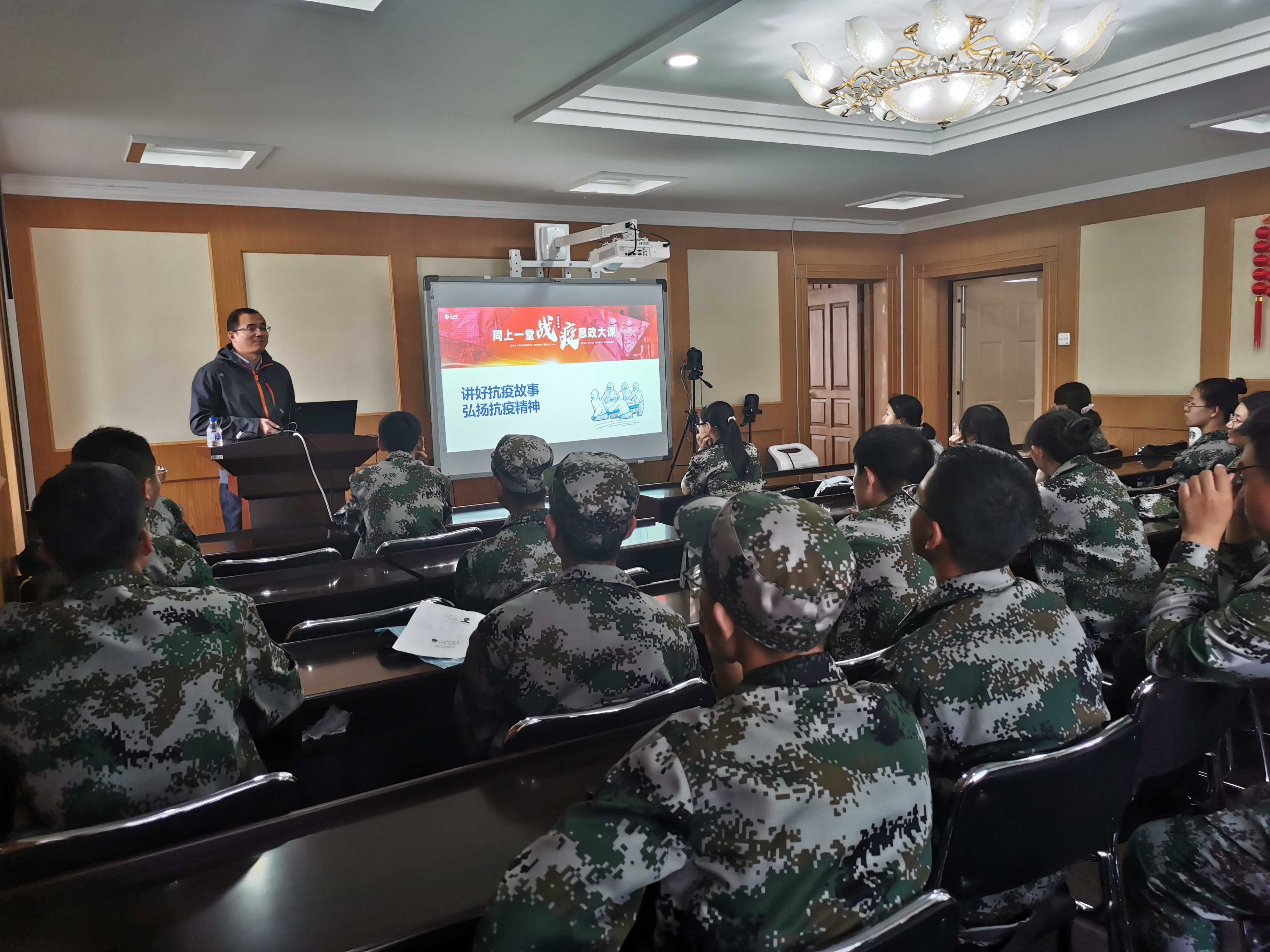 9月25日上午,公司举行“讲好战疫故事”主题教育讲座,全体2020级本科生新生参加讲座,公司副书记兼副经理郑东主讲,公司有关教职工参加了本次讲座。