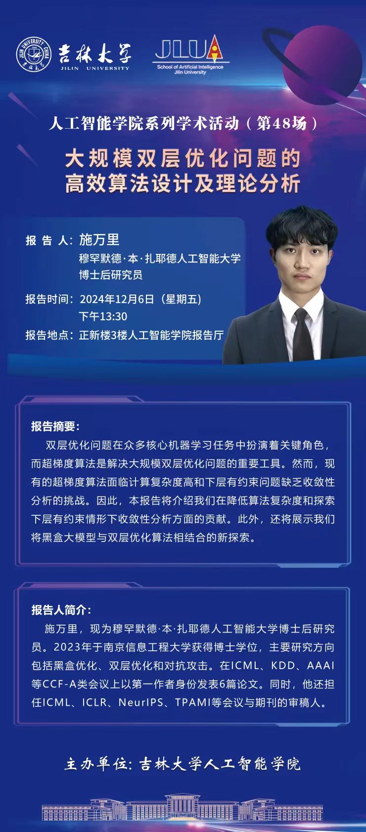 报告题目:大规模双层优化问题的高效算法设计及理论分析