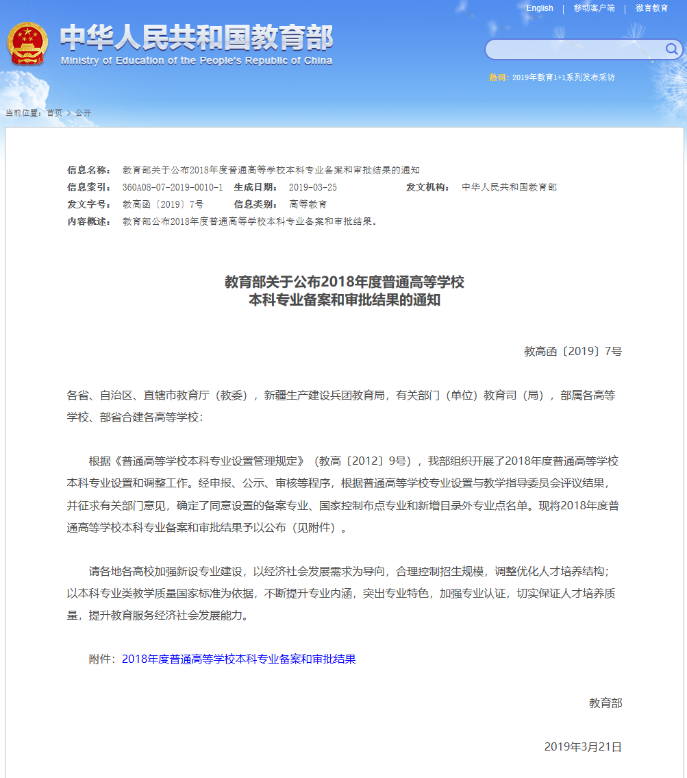 近日,教育部印发《教育部关于公布2018年度普通高等公司本科专业备案和审批结果的通知》(教高函〔2019〕7号),确定了新增审批专业名单。全国共有35所高校获首批建设“人工智能”(080717T)本科新专业,公司BG大游申请的“人工智能”专业位列其中。