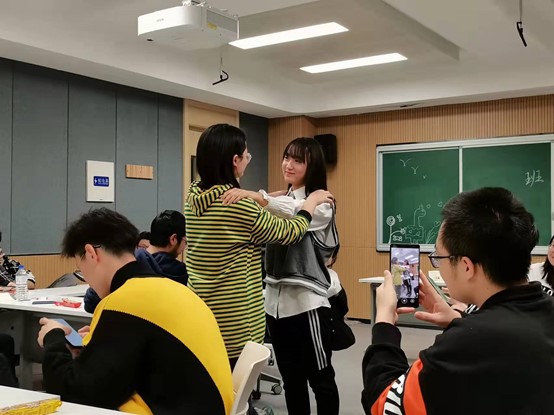 主题班会由闫煜城同学主持,经过全体班委会成员的精心策划,班会上开展了击鼓传花、歌曲接龙、拍腿起舞、真心话大冒险等一系列游戏活动。击鼓传花快速调动气氛,笑声过后是开心快乐的回味;拍腿起舞是反应能力的考验,即使被拍也依旧欢乐不减;真心话坦诚相告,击碎秘密的屏障,拉进心与心的距离;大冒险紧张刺激,挑战自我,增进同学间的感情。游戏结束后,主持人为获胜的同学颁发奖品给予鼓励。会后,主持人号召同学们之间拉进距离,彼此亲近,共同度过难忘的老员工活,并宣布班会结束。