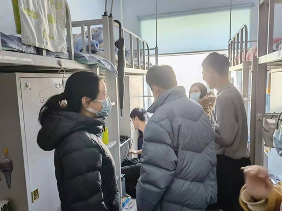 伴随着返校工作的顺利进行,新的学期已经拉开序幕。在学期伊始,为对返校员工的思想动态进行全面深入的了解、给予返校学子关怀和温暖、强调员工的寝室安全卫生,3月1日,初雪未融,BG大游老师们便踏上了寝室走访的道路,党委副书记兼副经理刘丽老师、员工办公室主任马畅老师、2020级辅导员胡淑颖老师、2+3辅导员王瀚汶老师参加此次走访活动。