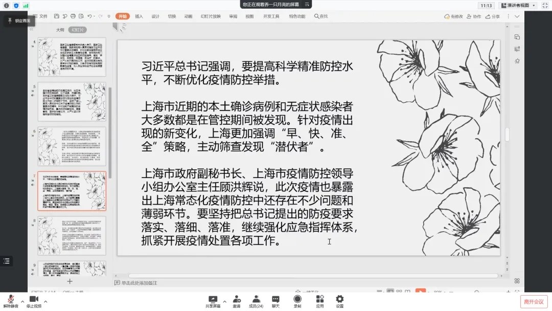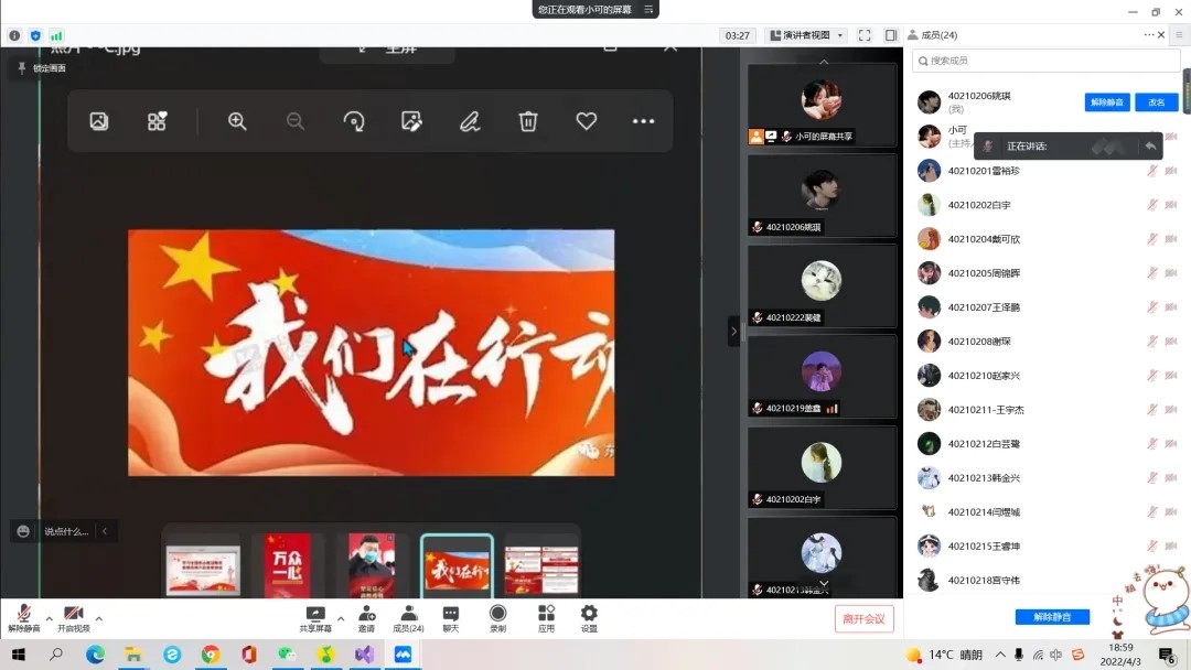 疫情就是命令,防控就是责任。在会议中,首先由刘一诺、刘双雪两位团支书带领同学们学习了习近平总书记关于疫情防控工作的重要讲话和指示精神。通过深入学习,同学们深切体会到了疫情防控的重要意义,明白了在疫情防控中青年一代对疫情防控的巨大意义。会议中,两位团支书进一步强调了疫情防控工作的重要性,号召同学们保障自己的健康作息的基础上保证学习时间。同时,同学们要积极配合疫情防控工作,不为疫情防控添麻烦,遵守公司、公司疫情管理相关规定,主动承担起新时代青年所应具有的责任与担当。会议的最后,两位团支书带领大家了解了“喜迎二十大、永远跟党走、奋进新征程”等系列活动,鼓励大家以实际行动和昂扬的姿态迎接党的二十大的胜利召开!