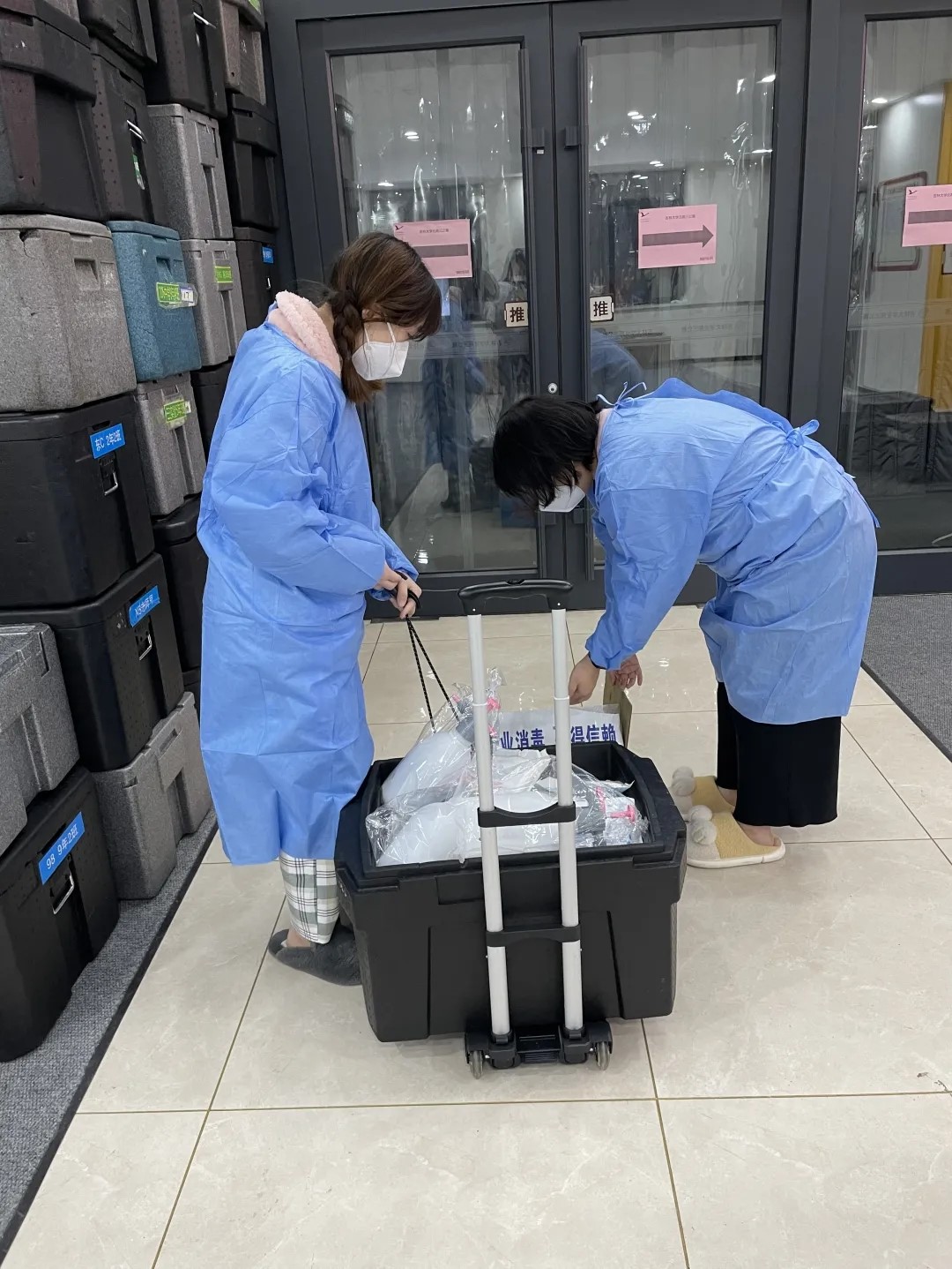 3月16日,在教学秘书兼2020级辅导员胡淑颖老师的带领下,物资分发队员们经历了一天的筹备分发,成功地将防疫物资发放到每位同学手中。非团结与奋斗,哪有这般速度;是责任与大爱,方才如此雄奇!胡老师和队员们的辛苦付出让每个人为之动容,公司发放物资的齐全丰富让每位同学不胜感激。疫情当前,全院师生团结一心,共度时艰。从紧锣密鼓的筹备到物资分发,同时间赛跑、与瘟神抗争,物资分发队员秉承一份担当,去艰难险阻,送学子安康,成功地将防疫物资发放到每位辅导员、研究生、本科生手中。N95口罩、防护服、84消毒液、消毒湿巾等一应俱全,一腔大爱感动学子,一片苦心德铭古今。