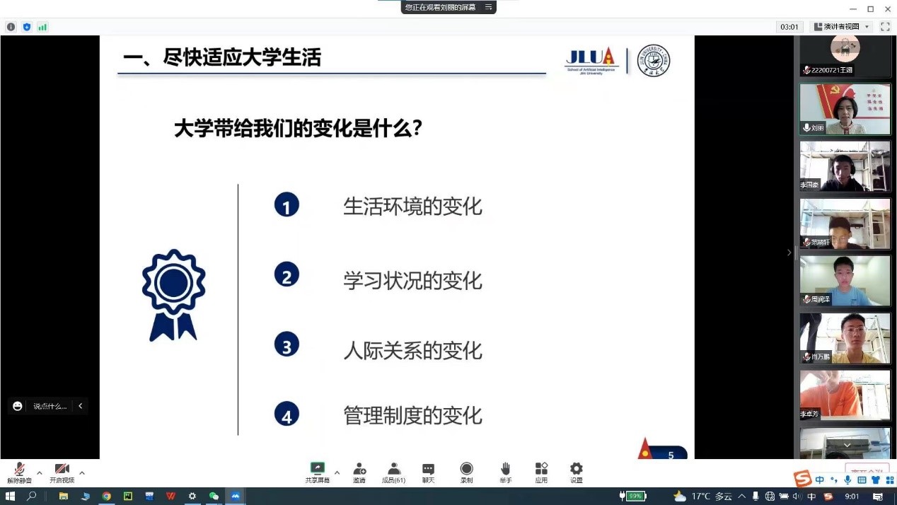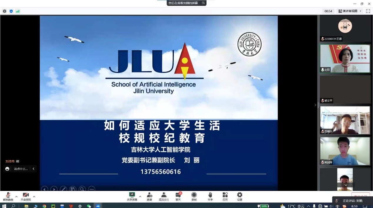 为加强新生思想教育,帮助其尽快适应老员工活,解决其学习生活中的困惑,8月31日上午9点,BG大游于线上举办本科生入学教育活动,由公司党委副书记兼副经理刘丽老师主讲。辅导员王瀚汶老师,辅导员助理王翊、杨雁茜及公司全体22级本科新生参加了此次线上会议。