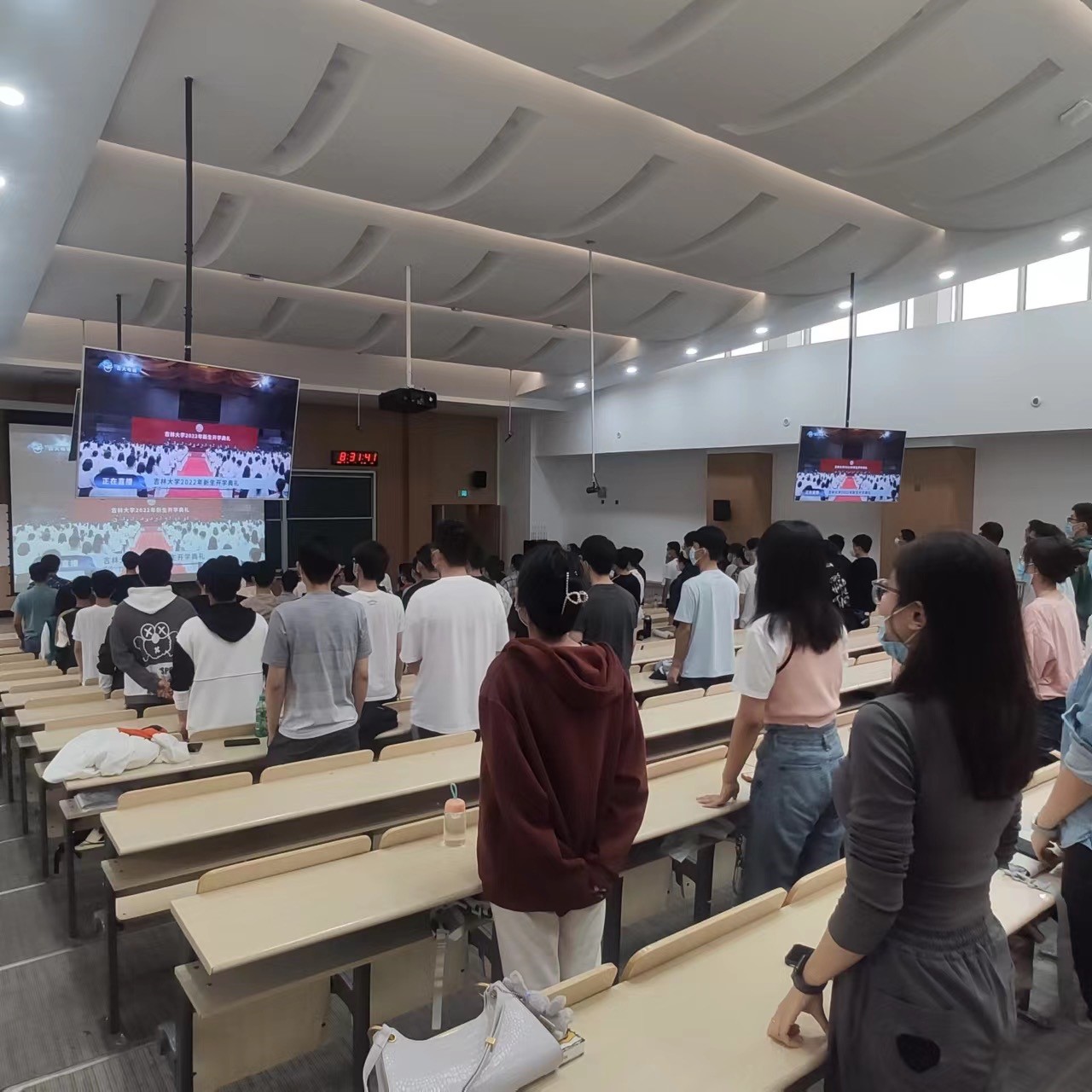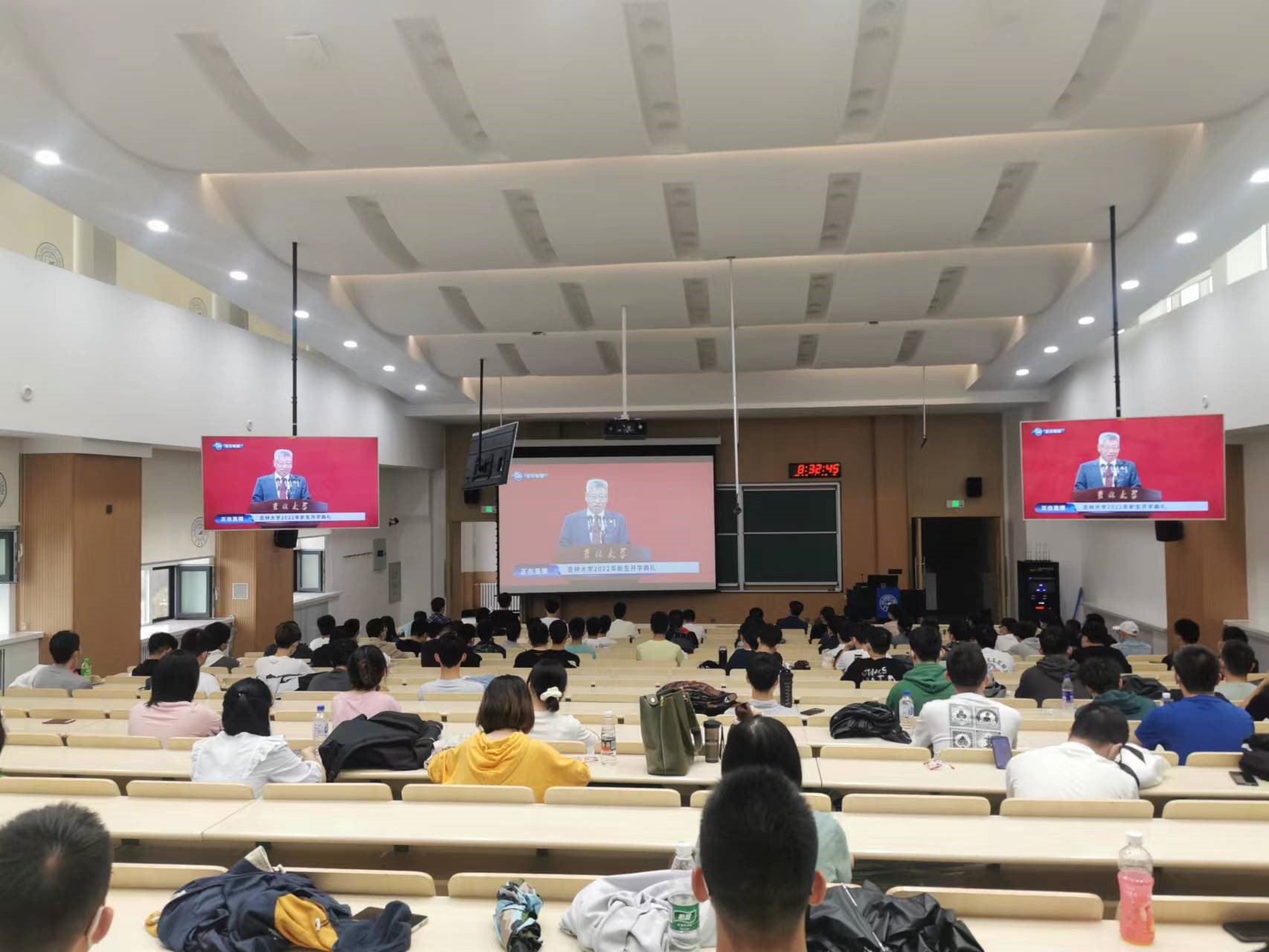 9月15日上午,bg大游集团官网2022年新生开学典礼隆重举行。鉴于当前疫情防控形势,此次开学典礼采用线上线下相结合的方式举行,BG大游新生在逸夫16阶分会场参加线上开学典礼。公司党委书记张晓冰老师、党委副书记兼副经理刘丽老师、学办主任马畅老师、新生辅导员王瀚汶老师及公司全体22级本科新生、研究生新生参加了分会场典礼。