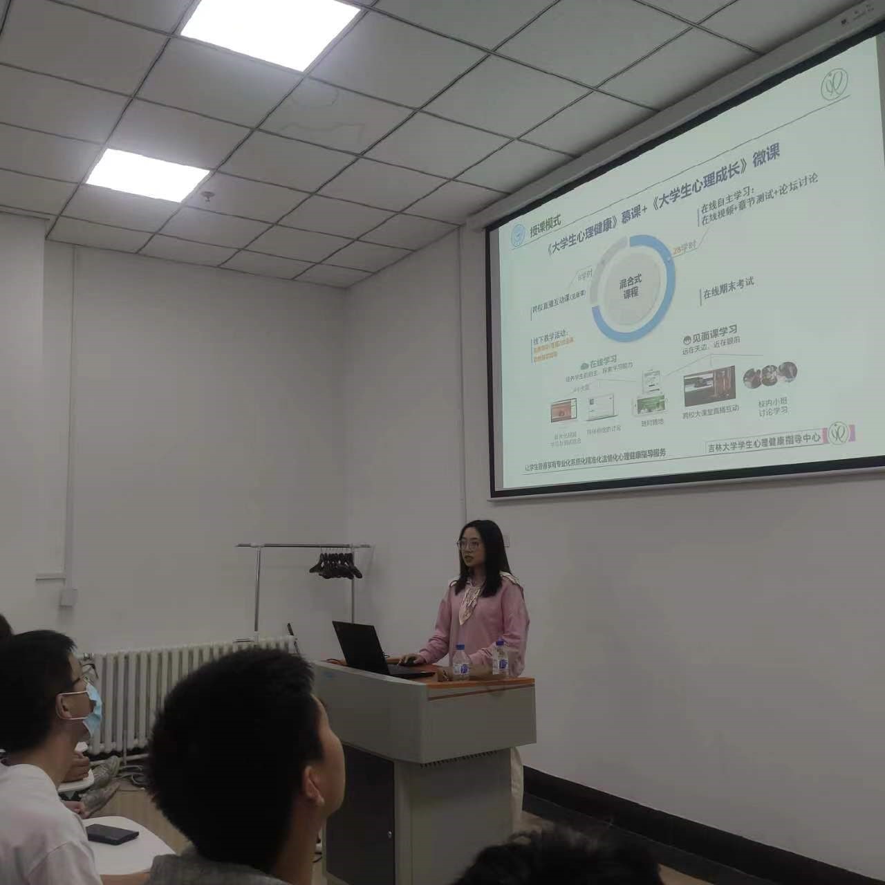 最后,夏婷玉为同学们普及了心理健康知识,鼓励同学们积极向心理辅导员、公司心理健康指导教师、员工心理健康指导中心的老师求助;此外,夏婷玉向同学们分享了“JLU吉大心声”公众号以及课程学习平台,并鼓励大家参与有关心理健康指导的活动。