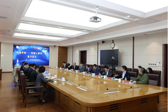最后,赵宏伟和张军代表双方签订“智慧公司——智慧云课堂”项目协议书。